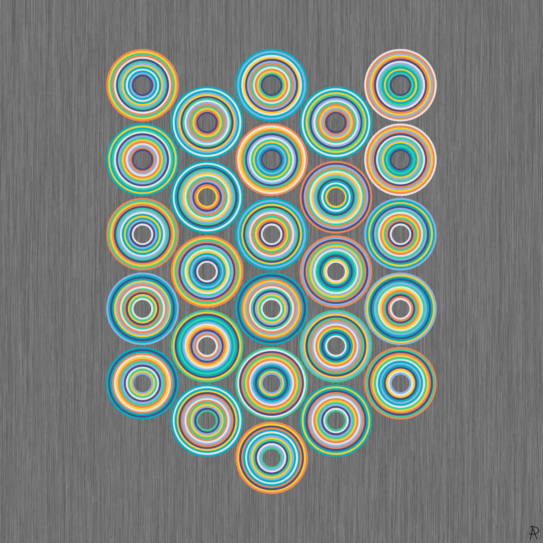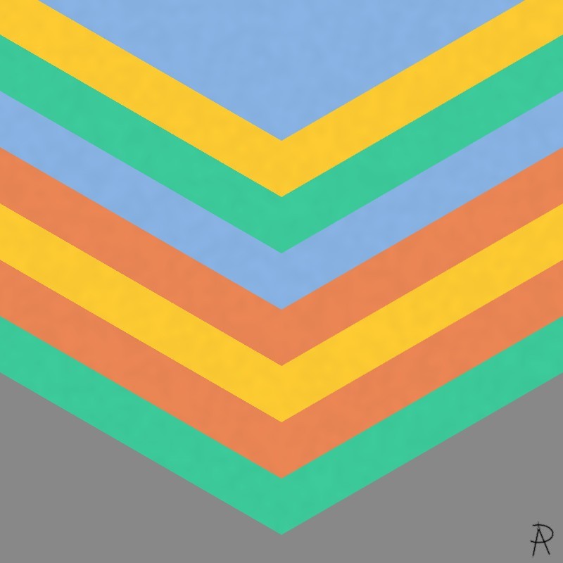 This artwork answers the question of how many ways can one place eight color pairs such that there is one other color between the first color pair, two colors between the second color pair, and so on. Mathematically, these are the 150 different Langford sequences for \(n = 8\). This piece is the fourth in a series of artworks related to Langford sequences.