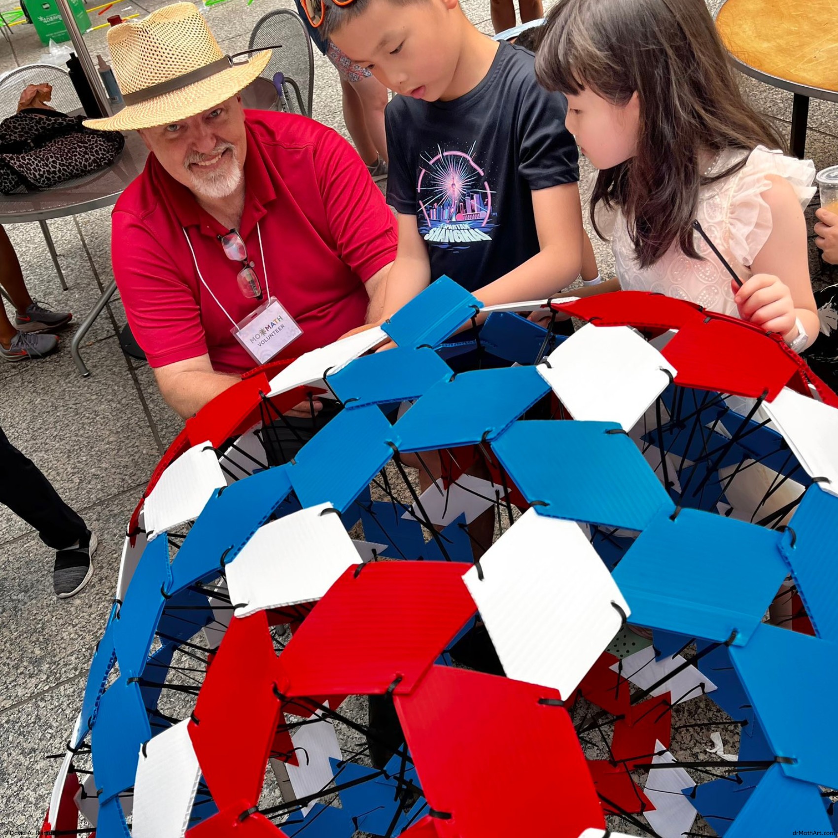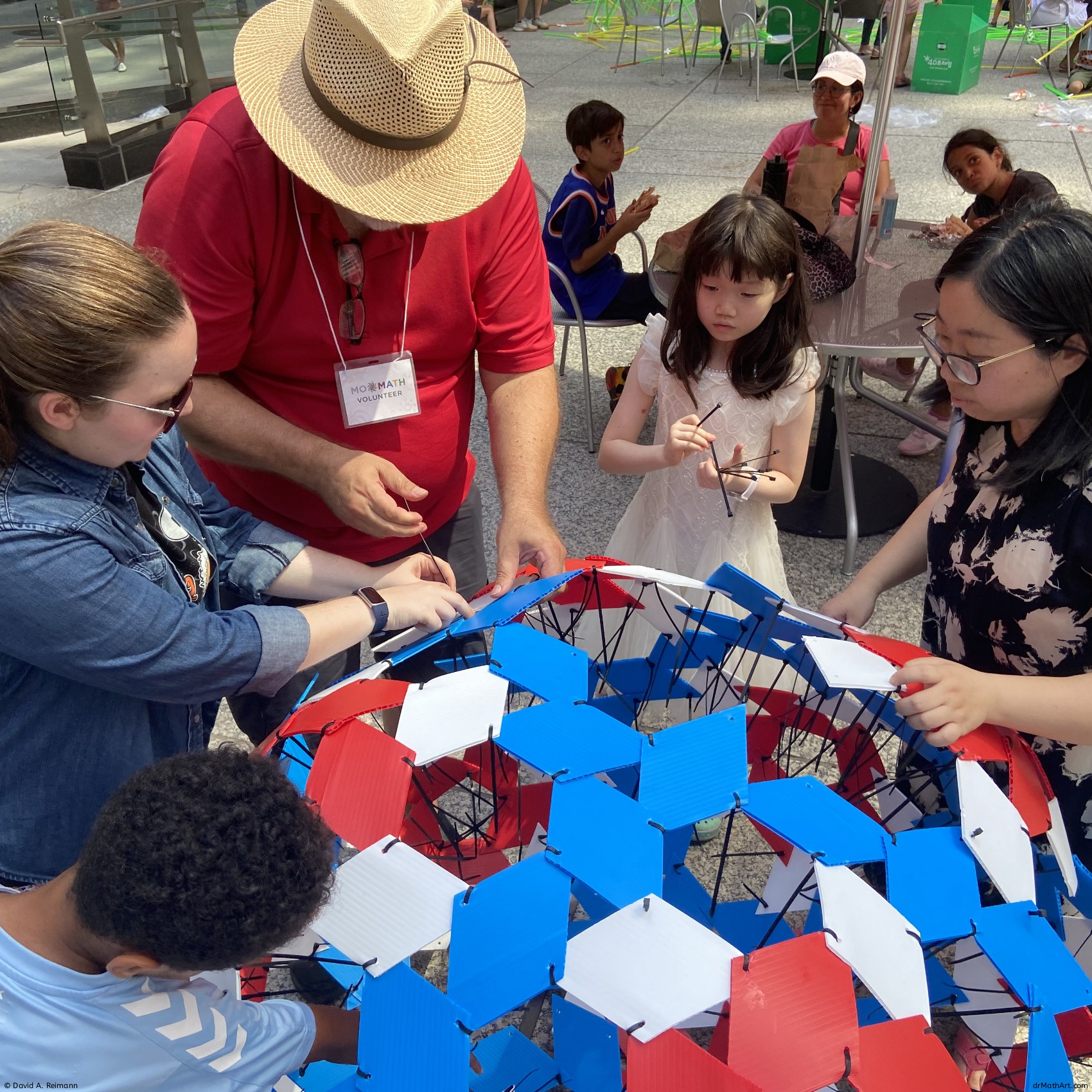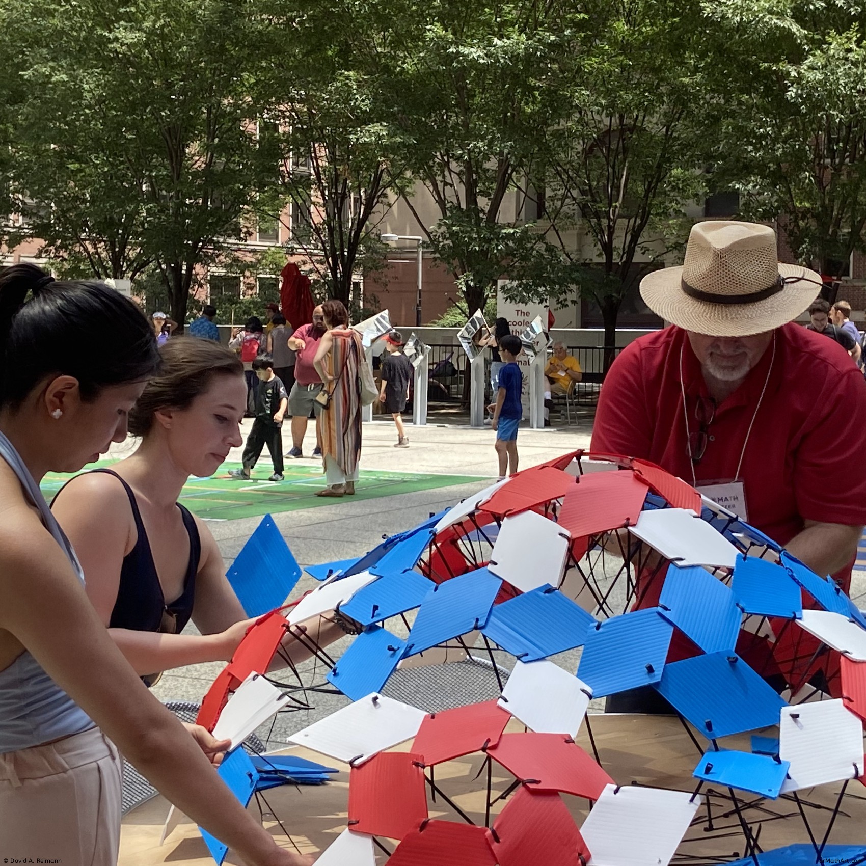This was the result of a hands-on mathematical art sculpture construction I led July 15, 2023 at the New York City Math Festival organized by the National Museum of Mathematics (MoMath).