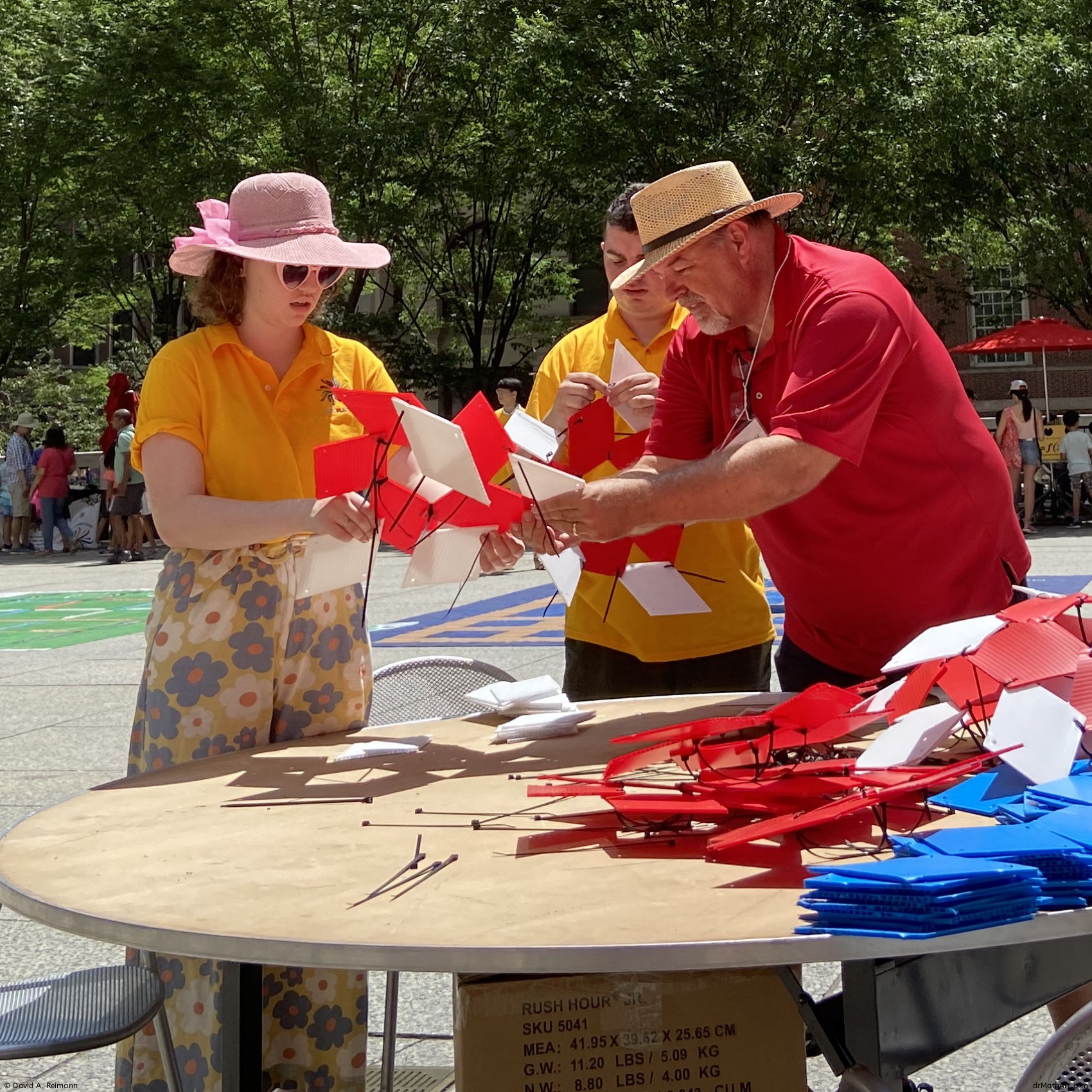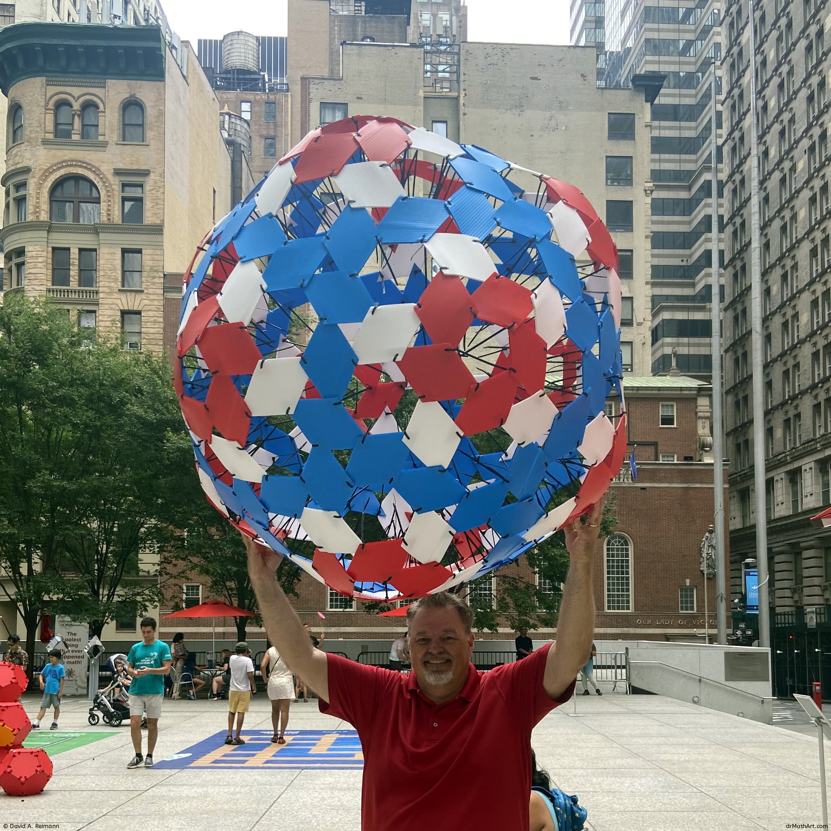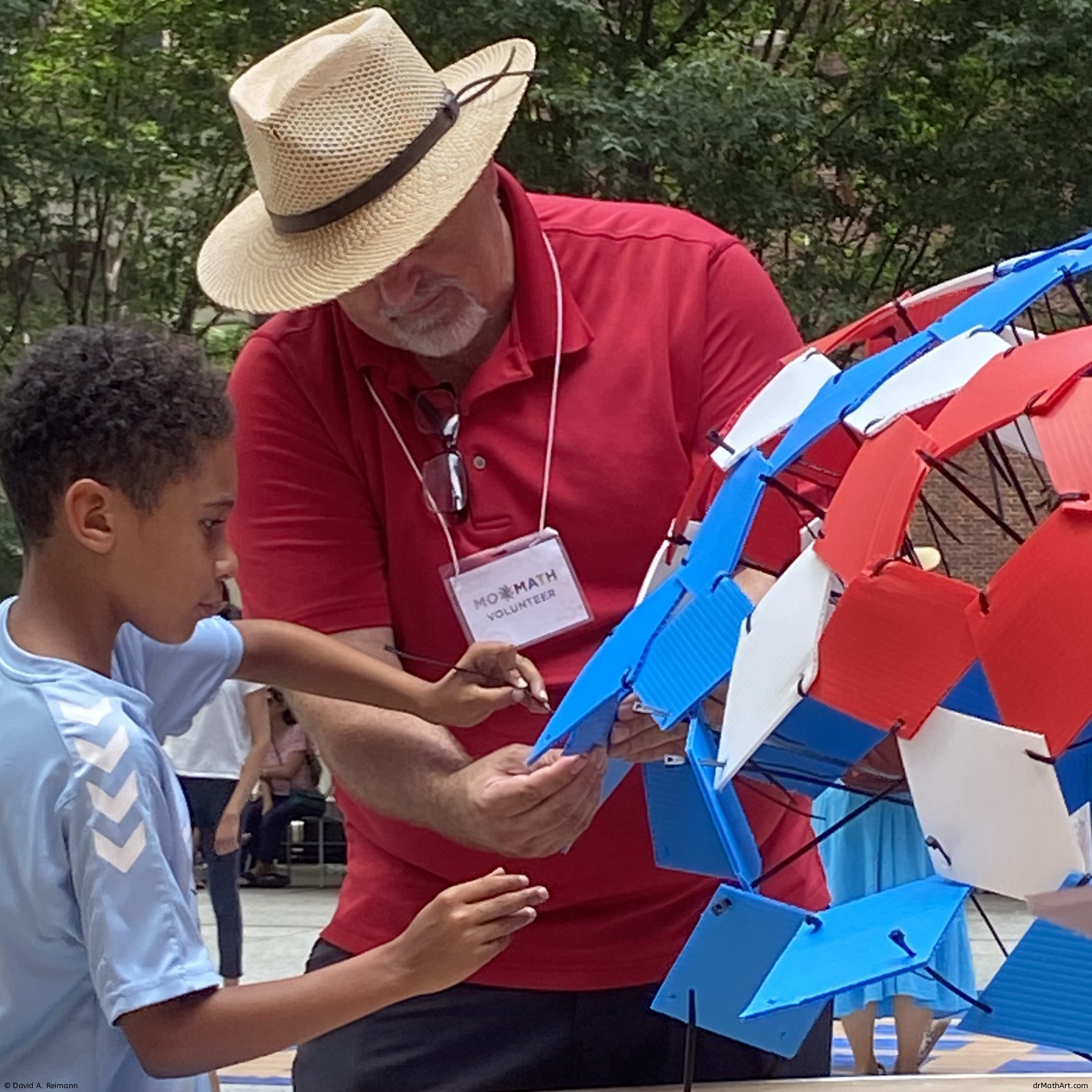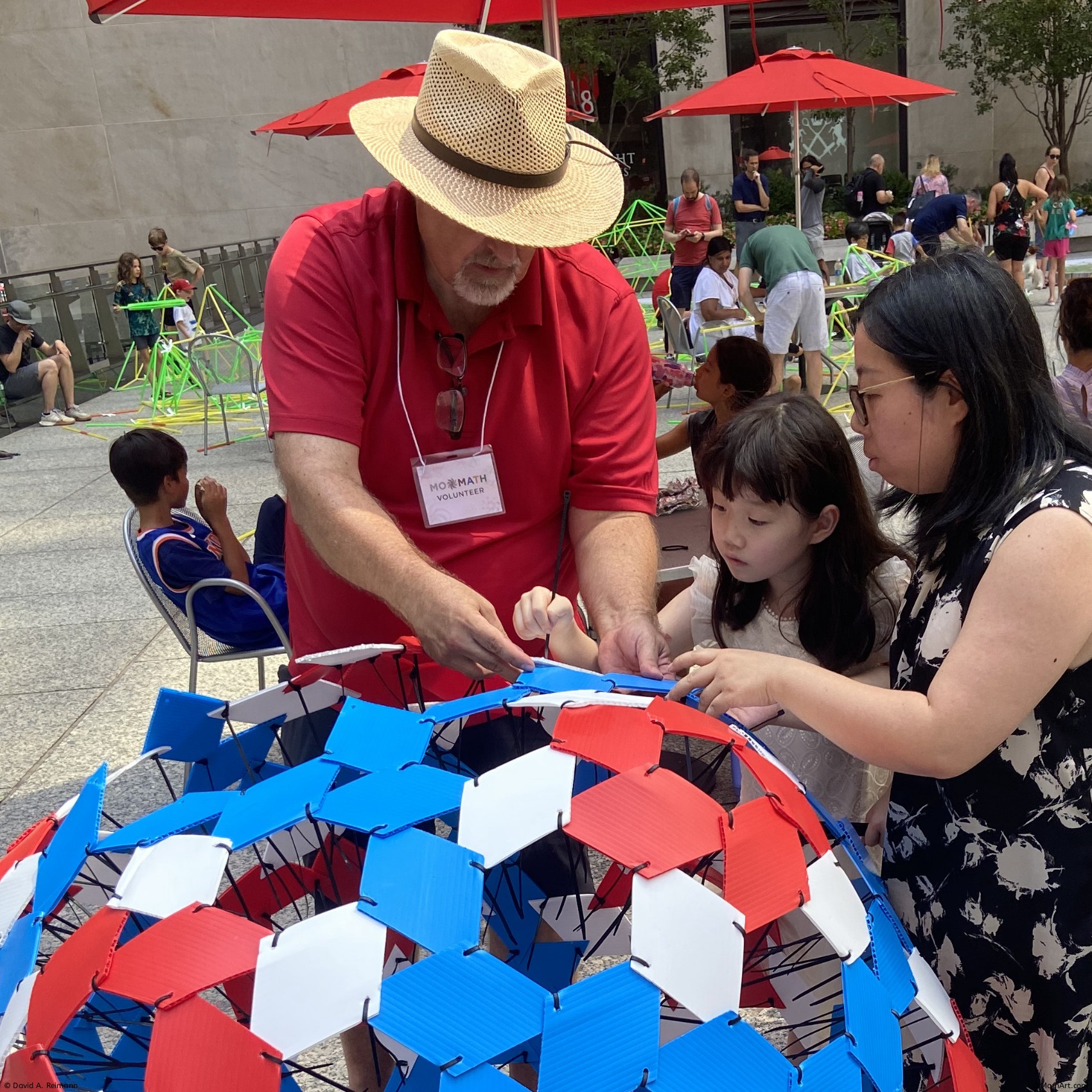 This was the result of a hands-on mathematical art sculpture construction I led July 15, 2023 at the New York City Math Festival organized by the National Museum of Mathematics (MoMath).