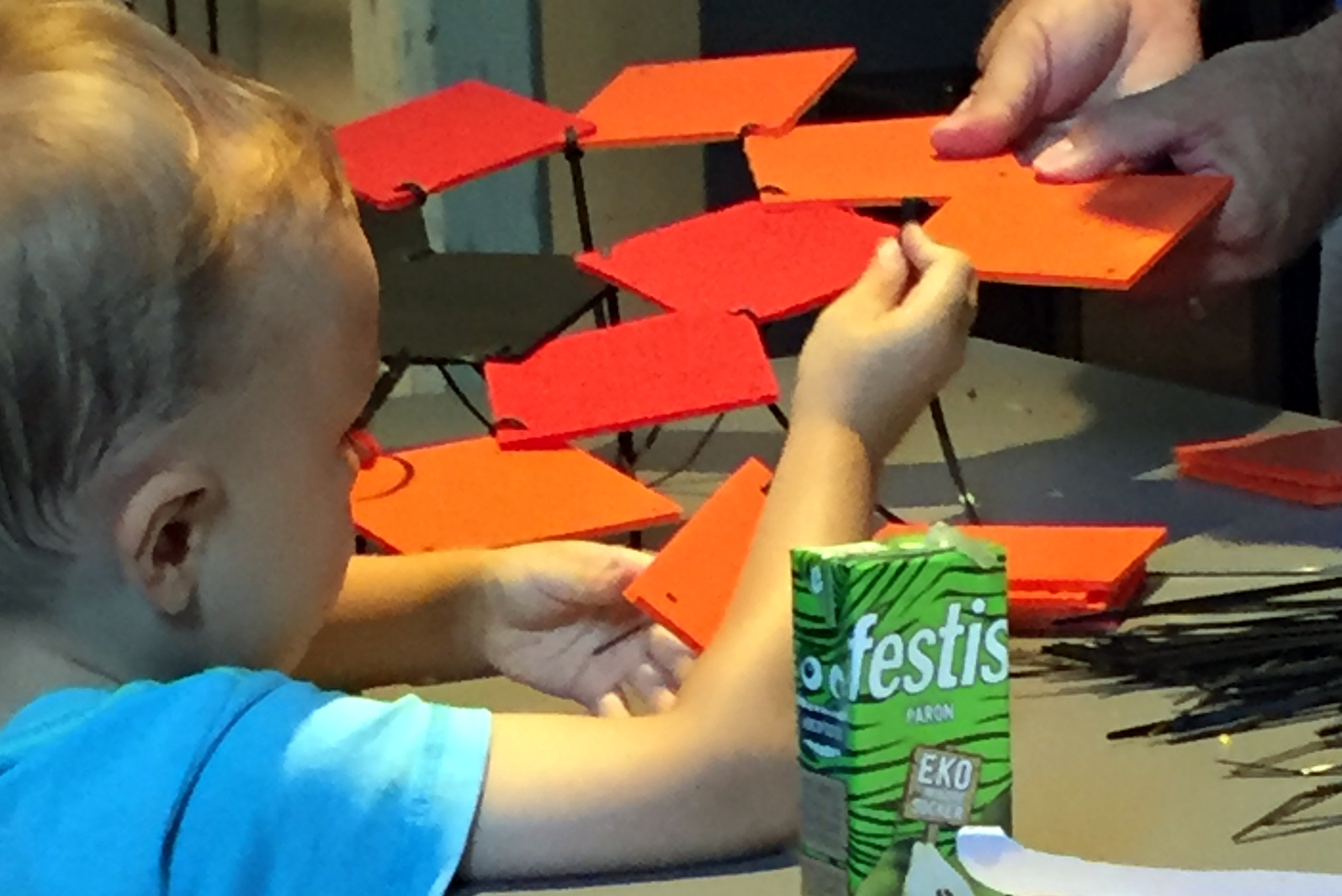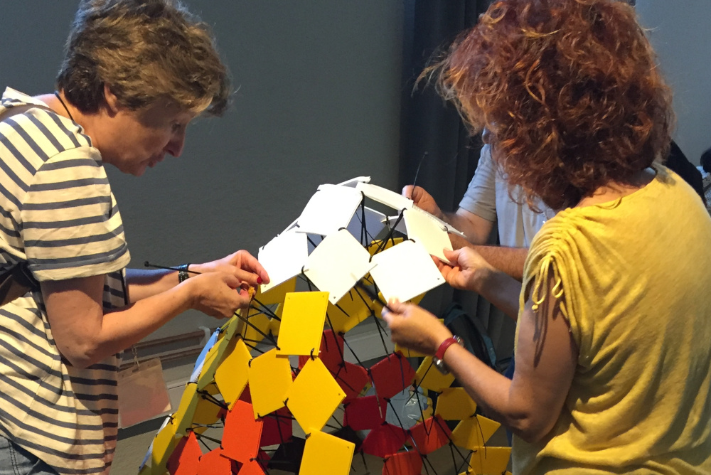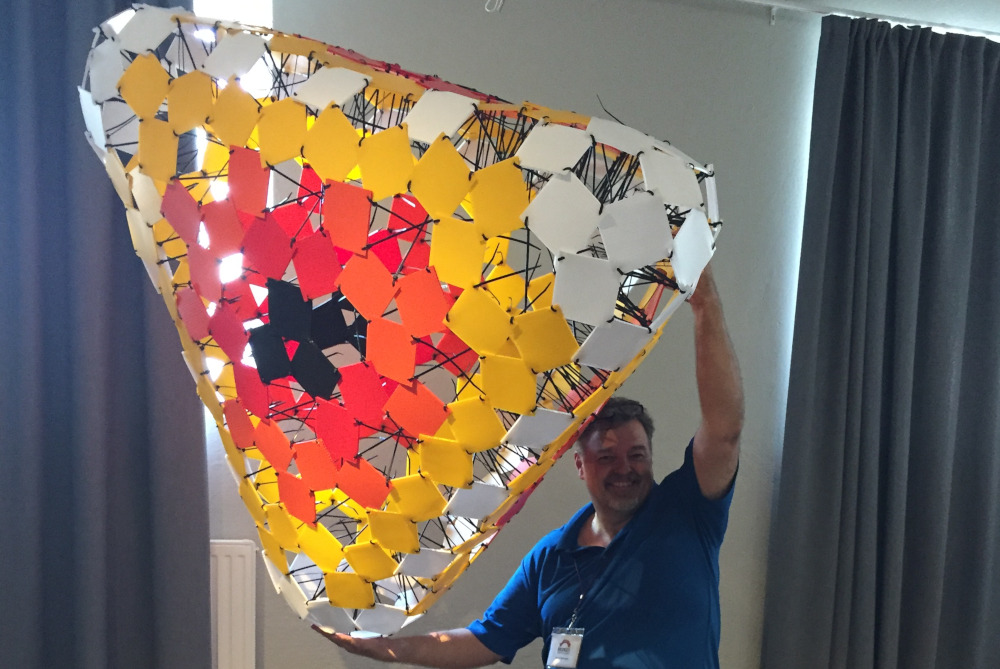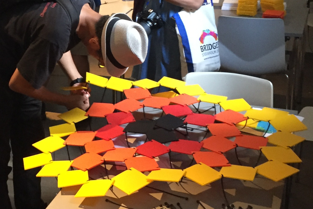 This was the result of a hands-on mathematical art sculpture construction I led at the Bridges Conference in Stockholm, Sweden On July 28, 2018.